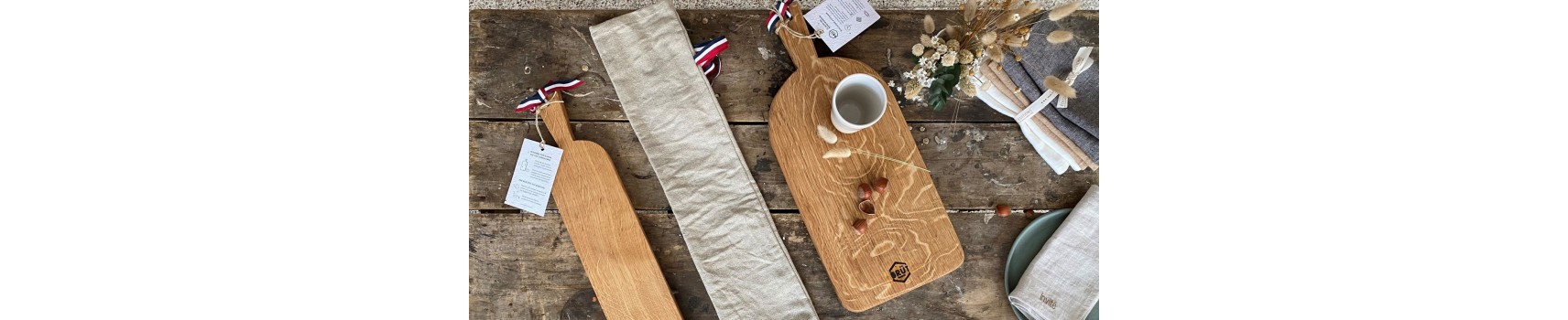 Depuis le bois brut jusqu'au pochon en lin et aux rubans tricolores, les partenaires