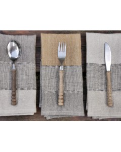 Sur la photo avec les couverts, dans l'ordre: à gauche OXYDE, au milieu BOIS et à droite Naturel