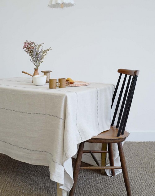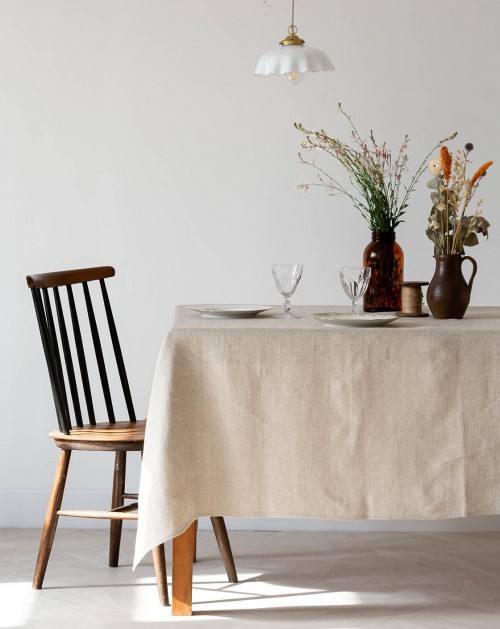 Conseil de dimanche : mesurez votre table en longueur et choisissez votre nappe de manière à ce qu’elle tombe de 25 cm environ de chaque coté pour un joli rendu.