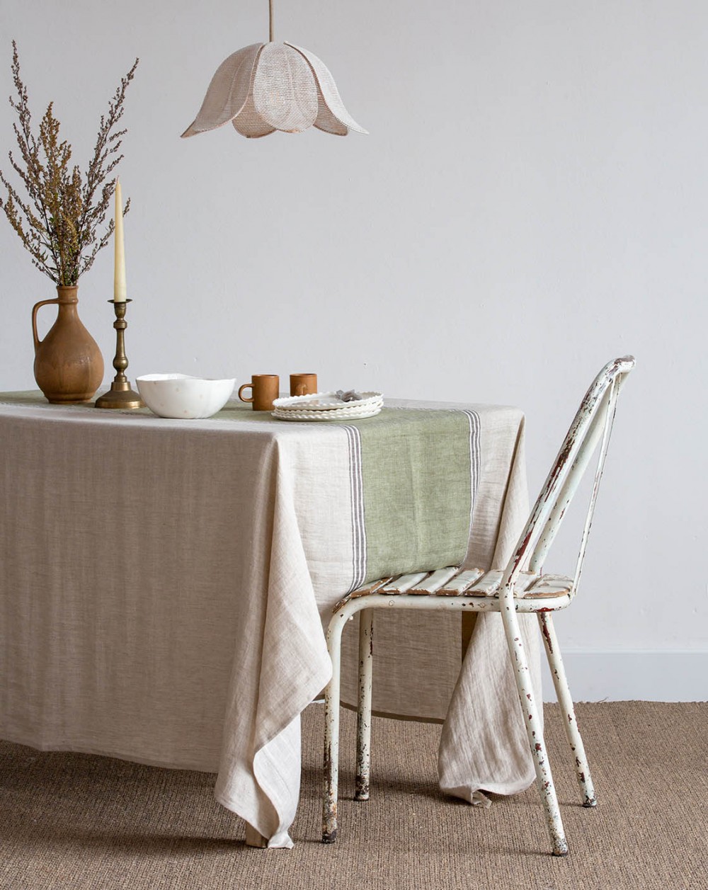 Conseil de dimanche : mesurez votre table en longueur et choisissez votre nappe de manière à ce qu’elle tombe de 25 cm environ de chaque coté pour un joli rendu