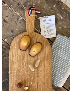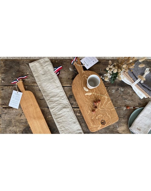 Planche emballée dans un pochon en lin 100% France tissé à Armentières (59), et lien tricolore en coton tissé à Comines (59).