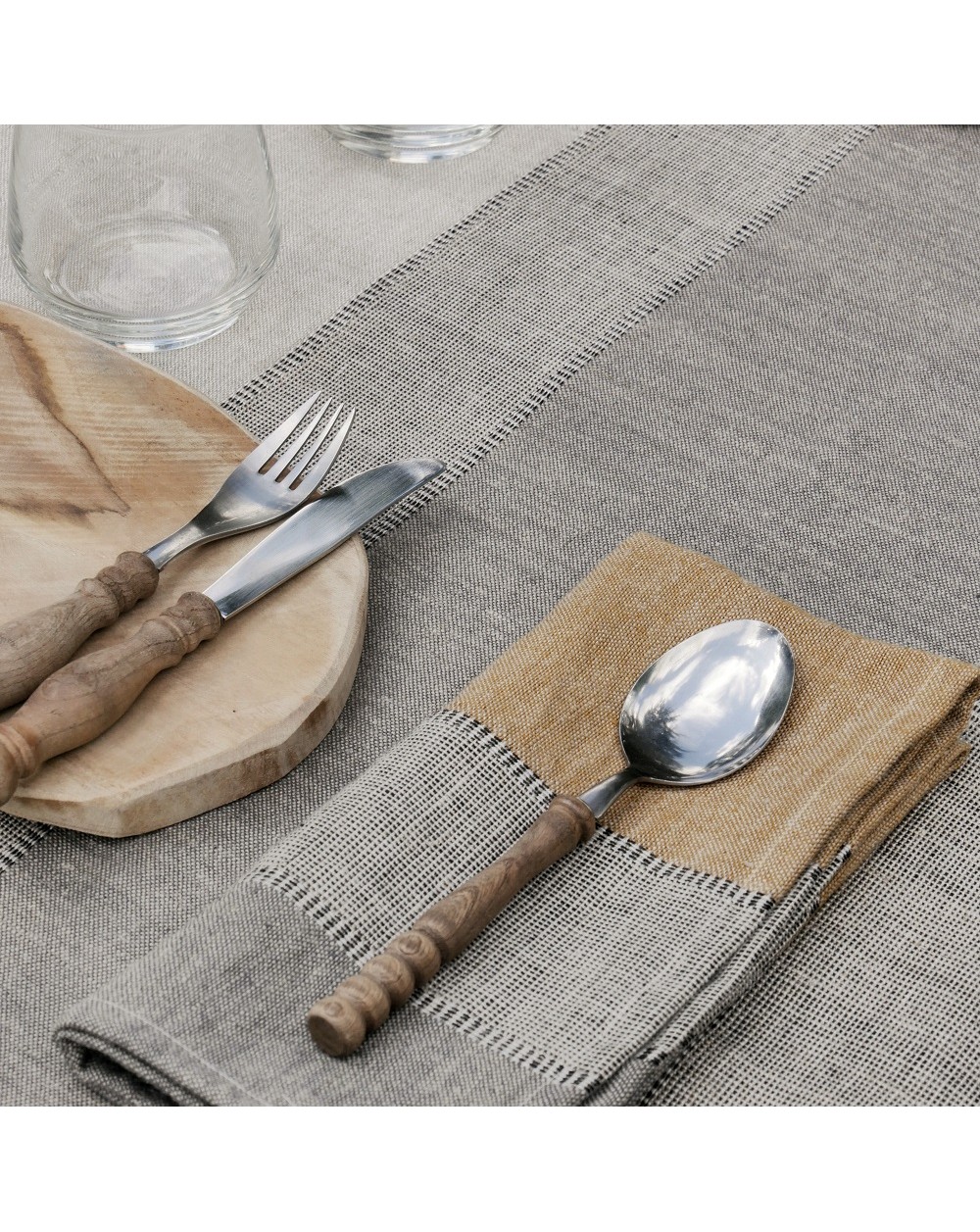 A associer avec la nappe RIVOLI bois, ou à mixer avec le coloris naturel ou le coloris Oxyde selon vos envies!