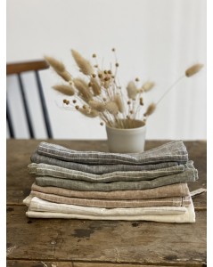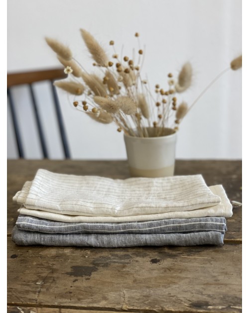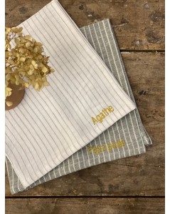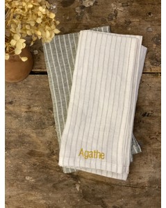 Découvrez la jolie serviette 100% lin à fines rayures à personnaliser!