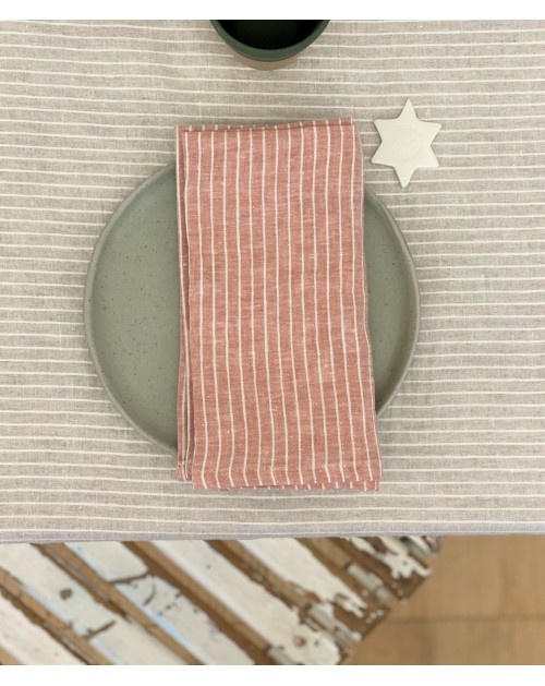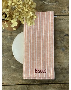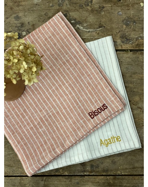 Découvrez la jolie serviette 100% lin à fines rayures à personnaliser!