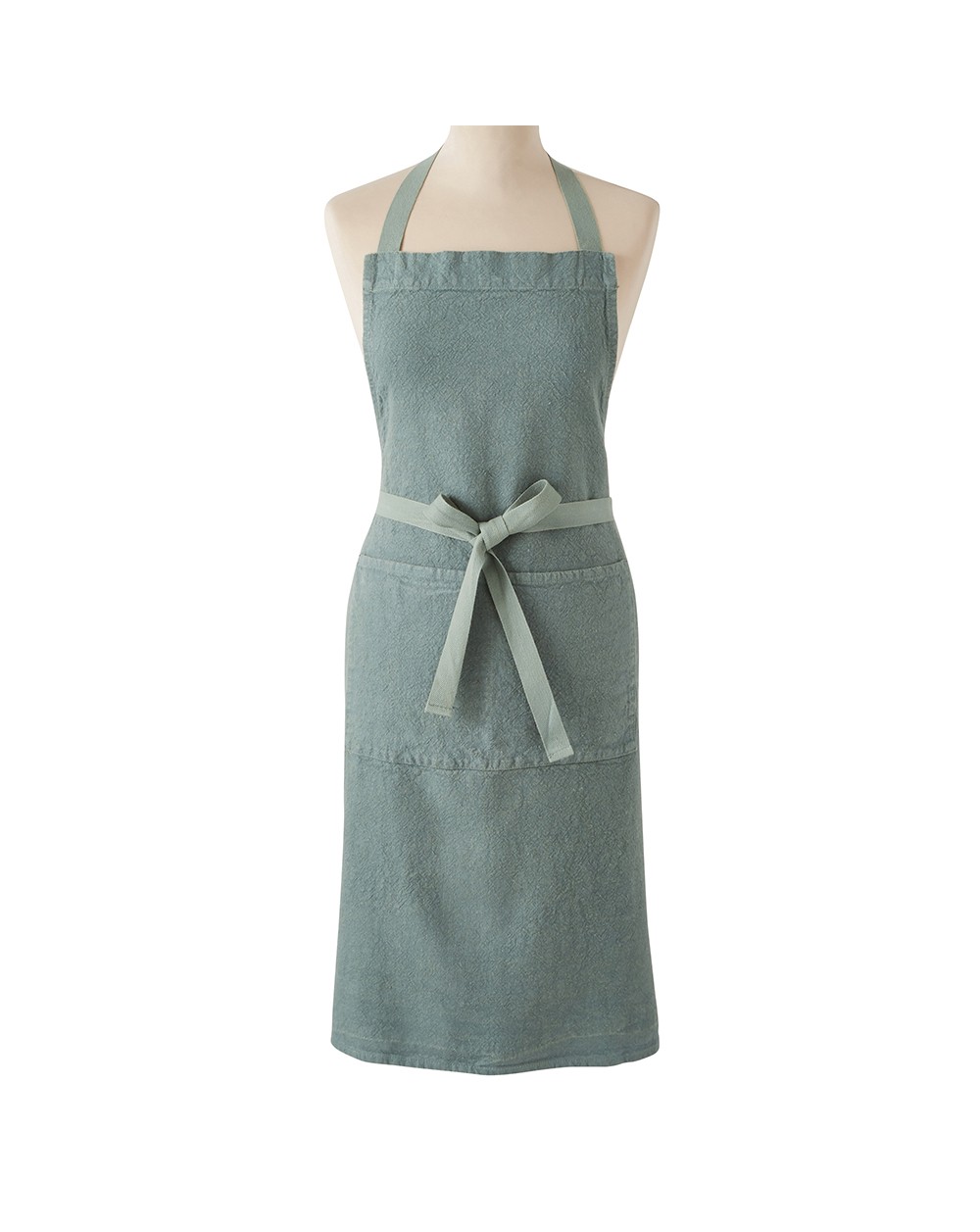 Tablier en lin lavé, teint en plongée pour un très beau rendu.