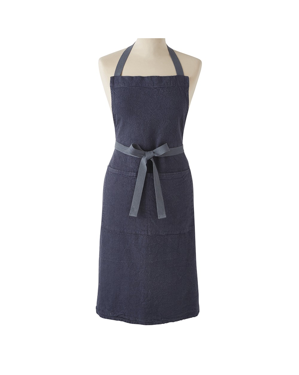 Tablier en lin lavé, teint en plongée pour un très beau rendu.