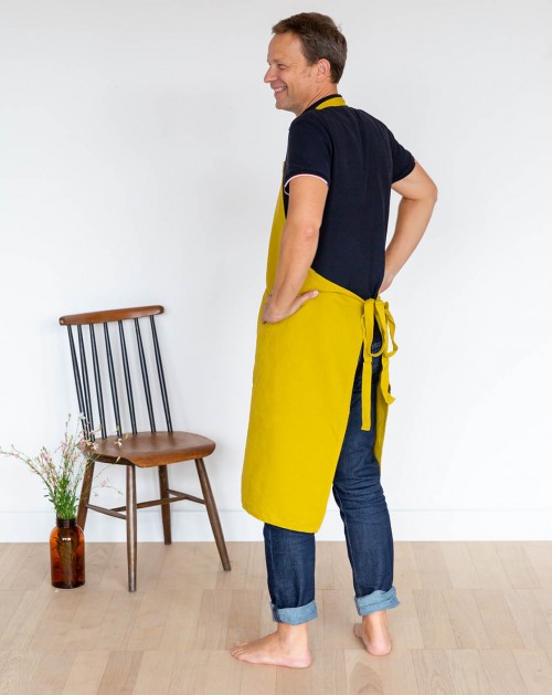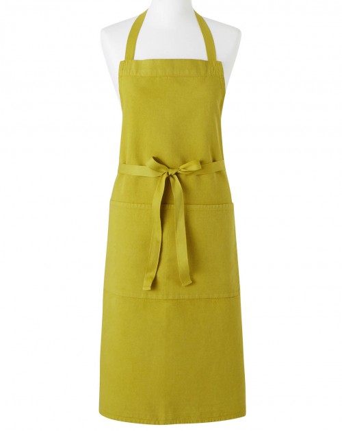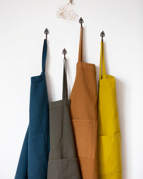 Ce tablier en métis coton/lin, teint en plongée pour un très beau rendu uniforme, offre une grande longueur sous le genou pour une bonne protection.