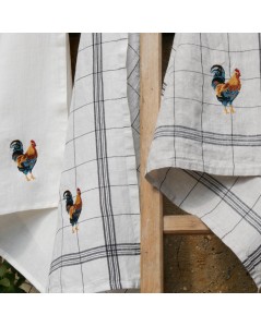 Bistrot Coq brodé naturel (lot de 2 torchons)